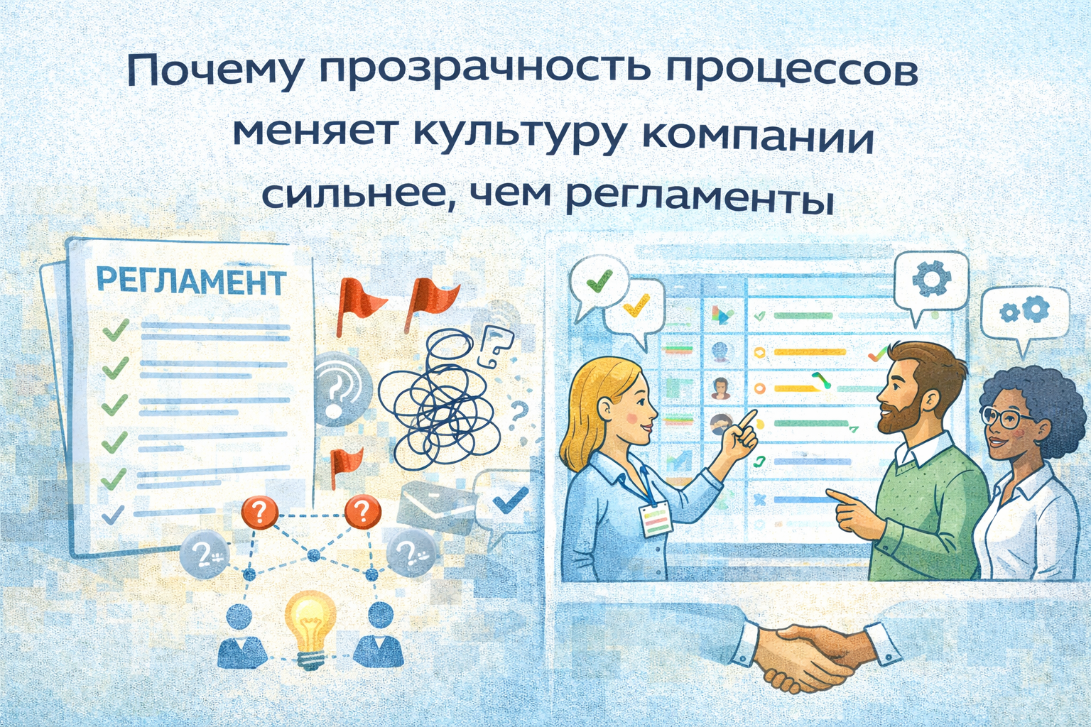 культуру компании сильнее меняют не регламенты, а прозрачность процессов.