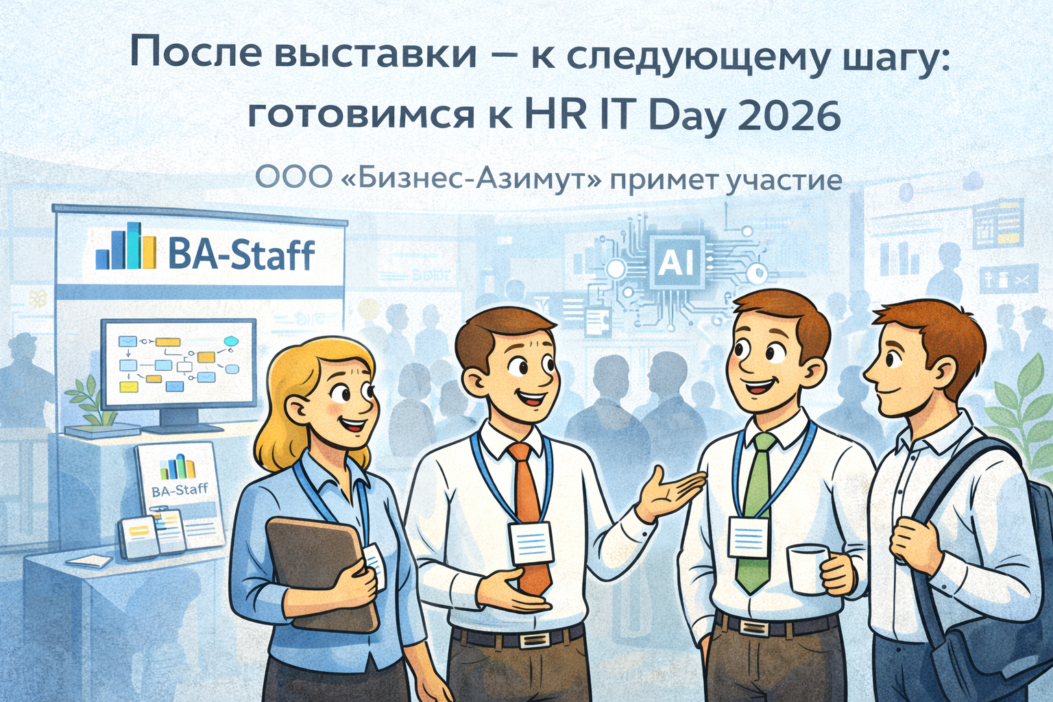 Недавнее участие ООО «Бизнес-Азимут» в отраслевой выставке стало для нас важным этапом. Мы рассказывали о BA-Staff, показывали реальные сценарии работы системы и, главное, общались с коллегами, которые сталкиваются с теми же задачами цифровизации HR.